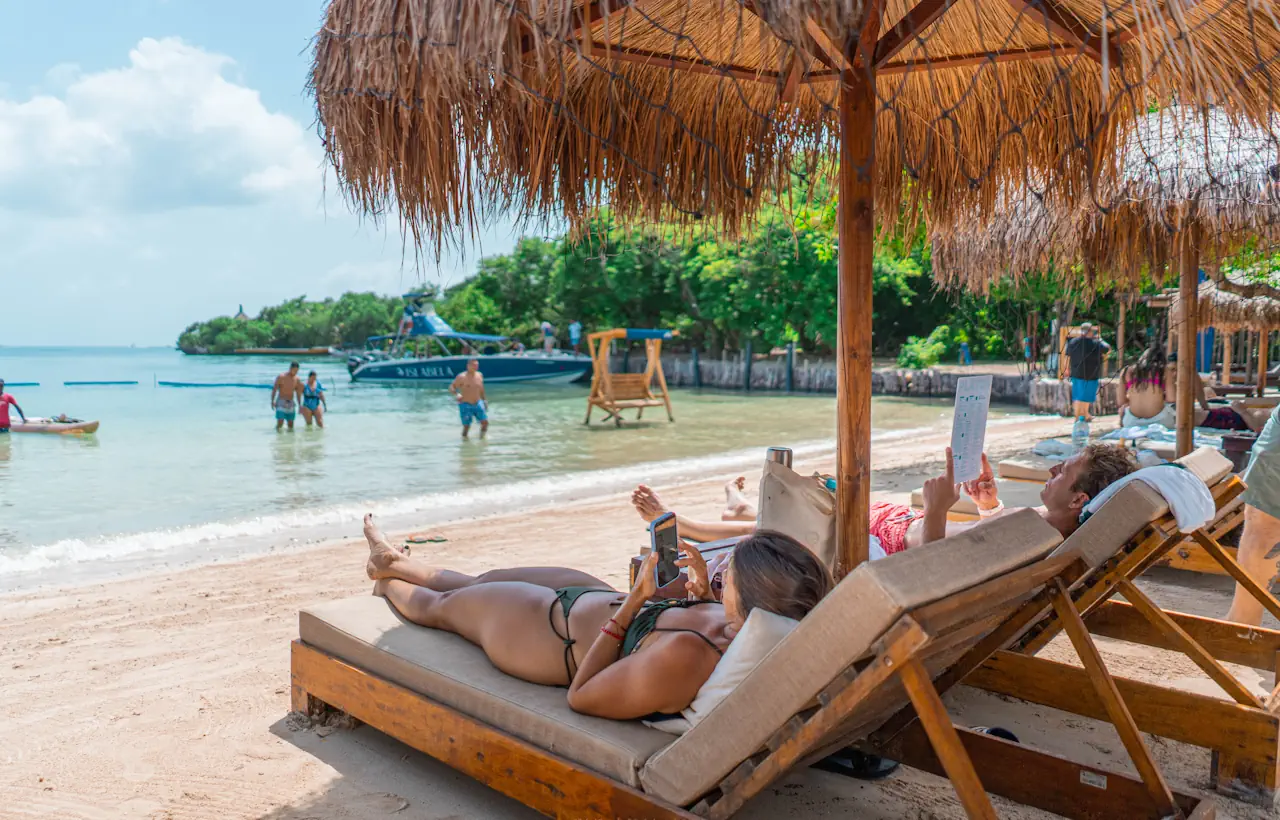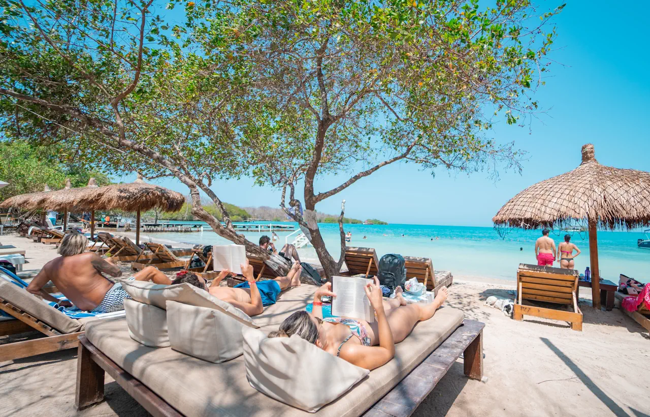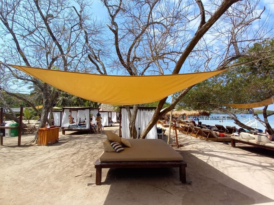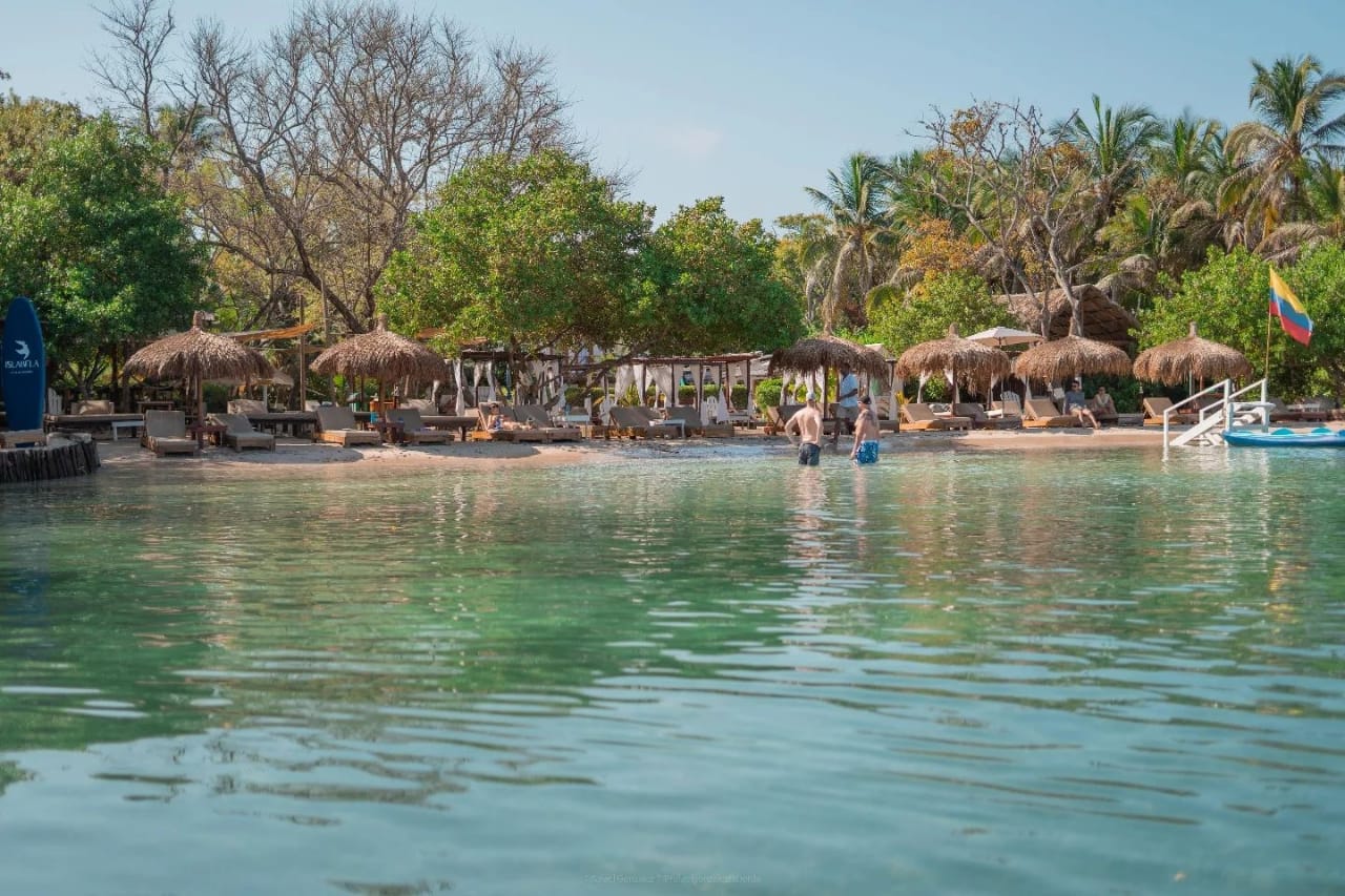 Islabela Beach is one of the most stunning beaches in the Rosario Islands, an archipelago of beautiful islands located in the Colombian Caribbean, near Cartagena. This beach is known for its crystal-clear waters, white sand, and lush natural surroundings.