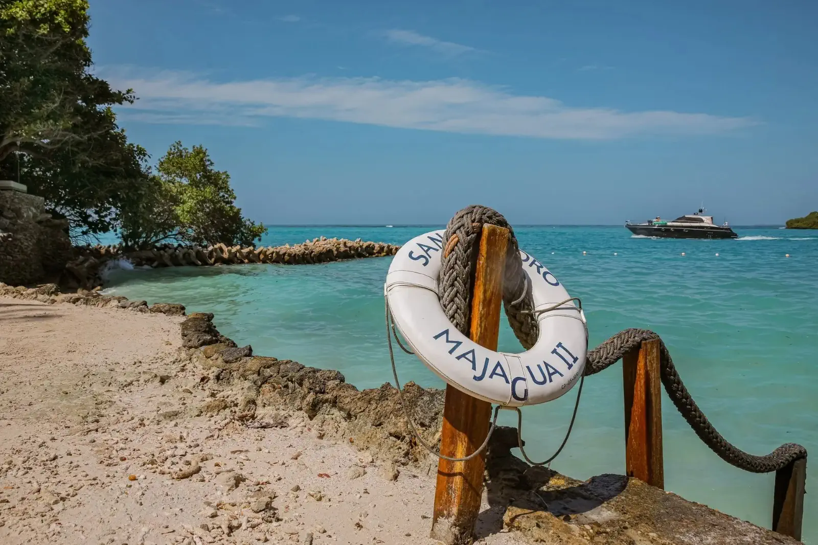 60 minutes from Cartagena de Indias, by sea, the Hotel San Pedro de Majagua is located on Isla Grande, one of the 28 islands that make up the Corales del Rosario National Natural Park, a valuable set of ecosystems, inhabited mainly by reefs. corals, colorful fish, crustaceans and other species.